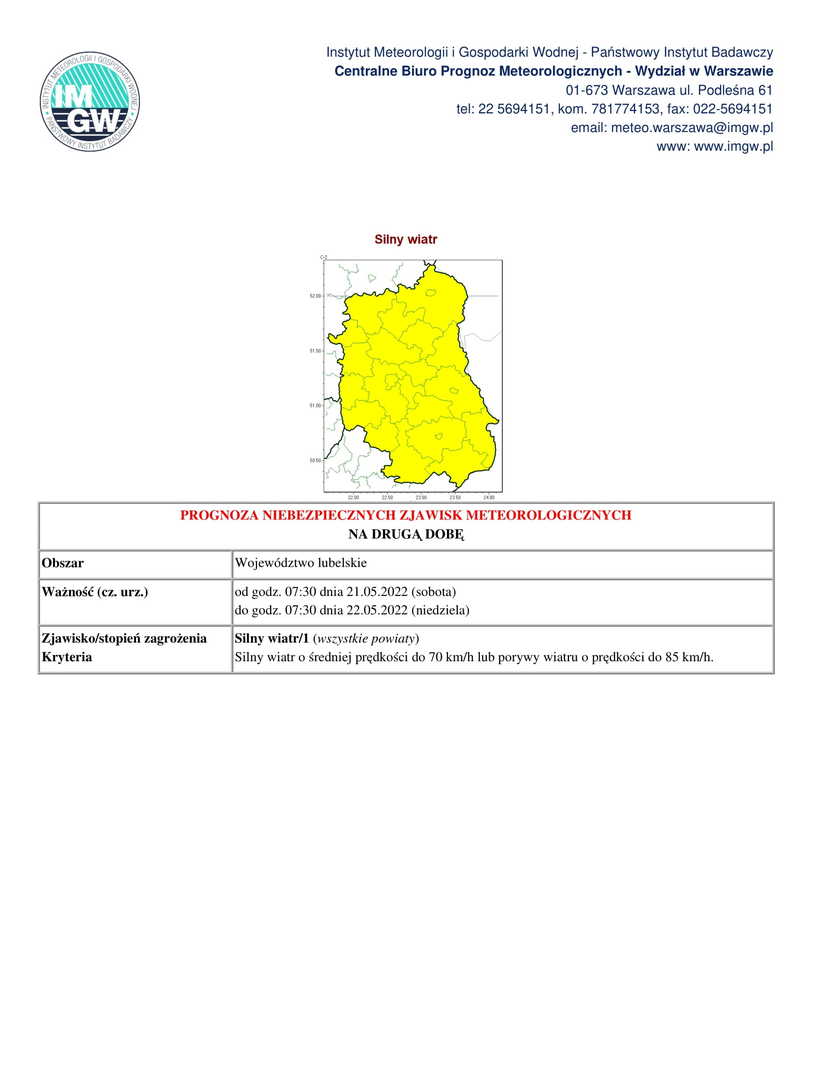 PROGNOZA NIEBEZPIECZNYCH ZJAWISK METEOROLOGICZNYCH Galeria zdjęć Załączniki Burze z gradem (2) [273.03 kB] Drukuj Kopiuj link Facebook.com X.com Data publikacji: 20.05.2022 godz. 07:35 Wyświetlono: 207 Kategoria: Aktualności Zobacz również Zobacz więcej 16.05.2022 Międzygminne zawody sportowo pożarnicze w Żółkiewce,... 17.05.2022 Zaproszenie do debaty o Raporcie O STANIE GMINY ŻÓŁKIEWKA... 19.05.2022 Informacja Powiatowego Lekarza Weterynarii w Krasnymstawie...