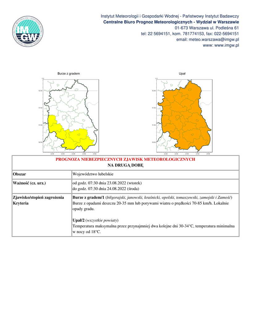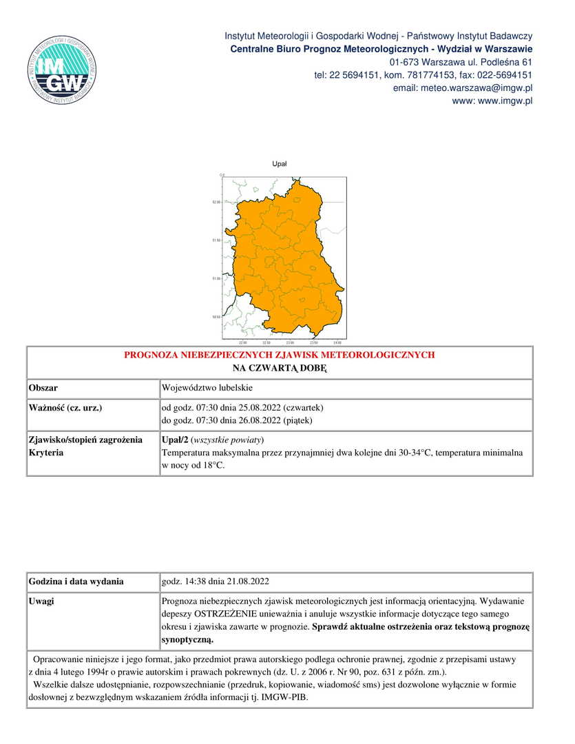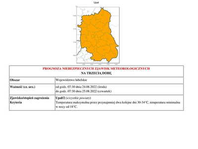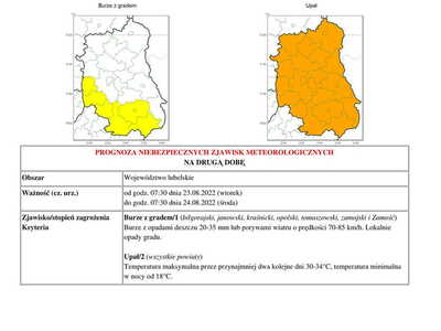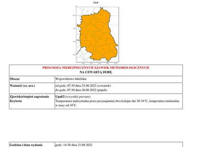 Prognoza niebezpiecznych zjawisk meteorologicznych Galeria zdjęć Drukuj Kopiuj link Facebook.com X.com Data publikacji: 22.08.2022 godz. 14:49 Wyświetlono: 283 Kategoria: Aktualności Zobacz również Zobacz więcej 18.08.2022 WNIOSKI O DODATEK WĘGLOWY 22.08.2022 INFORMACJA DLA MIESZKAŃCÓW 22.08.2022 Dożynki Powiatowe w Łopienniku Górnym 28 sierpnia 2022...