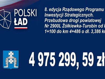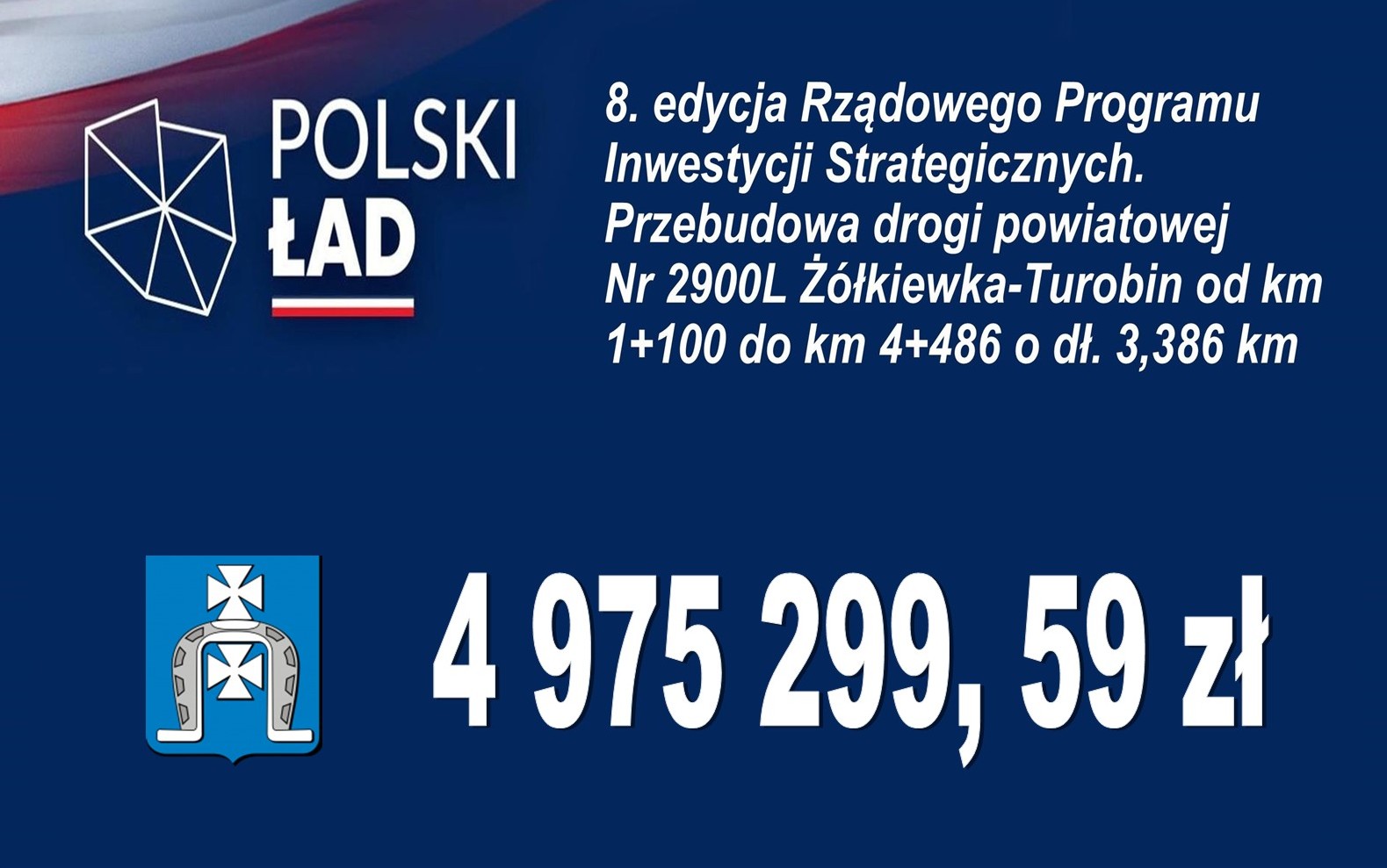 W piątek 8 grudnia br. w Urzędzie Gminy Żółkiewka podpisana została umowa z wykonawcą inwestycji pn.: „Przebudowa drogi powiatowej Nr 2900L Żółkiewka - Turobin od km 1+100 do km 4+486 o dł. 3,386 km” Inwestycja o wartości 5.237.157,46 zł realizowana będzie w ramach Rządowego Funduszu Polski Ład: Program Inwestycji Strategicznych z dofinansowaniem na poziomie 95% wartości zadania (4 975 299, 59 zł – pozostała kwota stanowi wkład własny Gminy żółkiewka i Powiatu Krasnostawskiego). Podpisanie umowy odbyło się w obecności przedstawiciela Banku Gospodarstwa Krajowego pana Michała Mączki. Generalnym Wykonawcą inwestycji jest przedsiębiorstwo WOD-BUD Sp. z o.o. W imieniu Gminy Żółkiewka umowę podpisał Wójt Gminy pan Jacek Lis, a w imieniu Wykonawcy pan Jędrzej Wojtaszek. Zakończenie inwestycji planowane jest w terminie do 8 września 2024 roku.