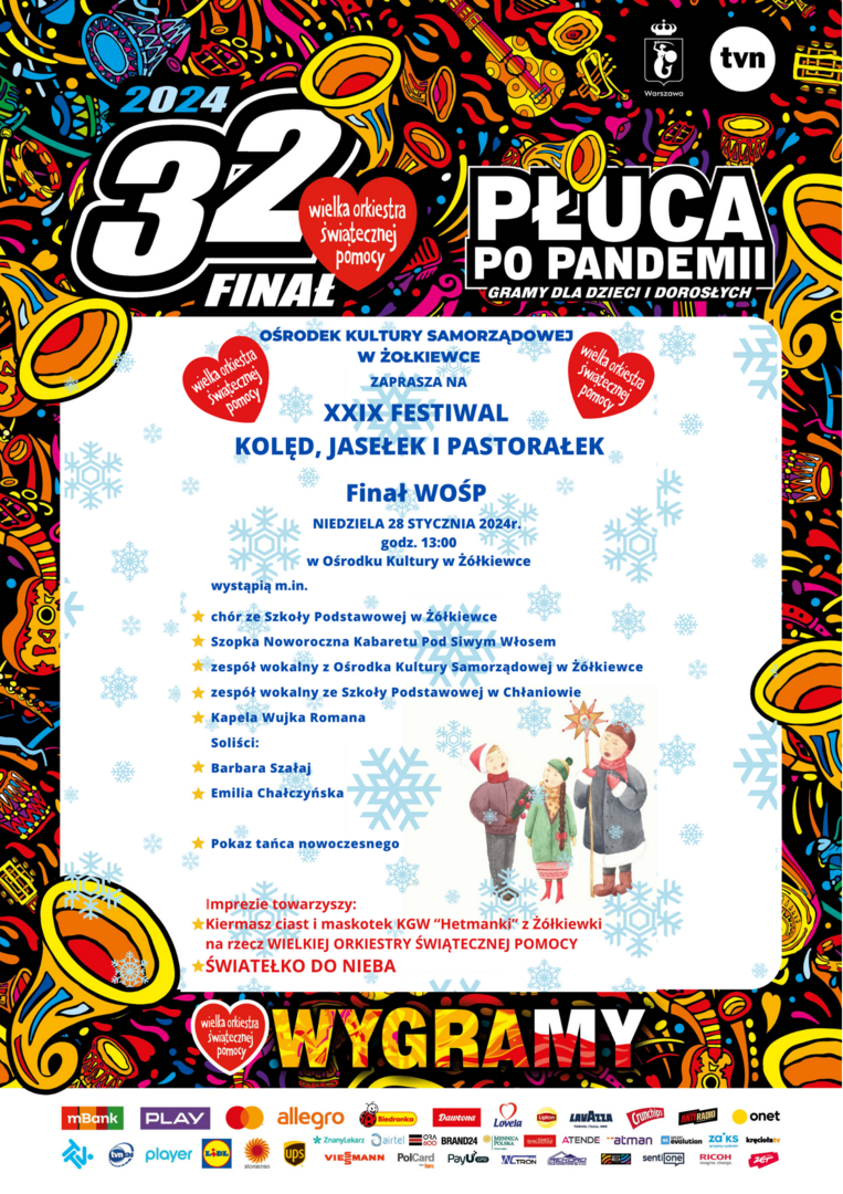 XXIX FESTIWAL KOLĘD, JASEŁEK I PASTORAŁEK Drukuj Kopiuj link Facebook.com X.com Data publikacji: 24.01.2024 godz. 07:43 Wyświetlono: 210 Kategoria: Aktualności Zobacz również Zobacz więcej 19.01.2024 INFORMACJA WÓJTA GMINY ŻÓŁKIEWKA 21.01.2024 Życzenia na Dzień Babci i Dziadka 22.01.2024 HARMONOGRAM ODBIORU ODPADOW NA 2024 ROK