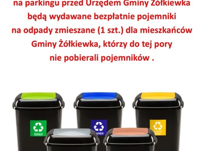 01.02.2023 Aktualności INFORMACJA DLA MIESZKAŃCÓW Od 6 lutego (poniedziałek) od godz. 9:00 na parkingu przed Urzędem Gminy Żółkiewka będą wydawane bezpłatnie pojemniki na odpady zmieszane (1 szt.) dla mieszkańców Gminy Żółkiewka, którzy do tej pory nie...