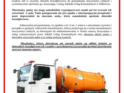 06.12.2022 Aktualności OGŁOSZENIE WÓJTA GMINY ŻÓŁKIEWKA Wójt Gminy Żółkiewka przypomina , że każdy właściciel nieruchomości na terenie gminy zgodnie z przepisami ustawy z dnia 13 września 1996 r. o utrzymaniu czystości i porządku w gminach (Dz. U. z 2022 r. ...